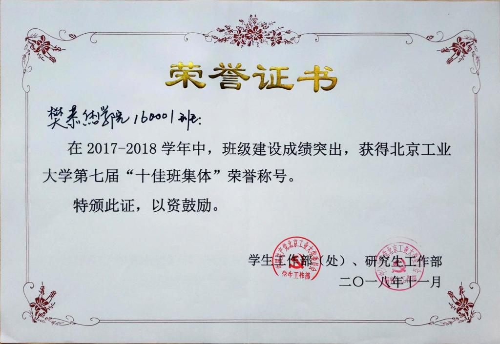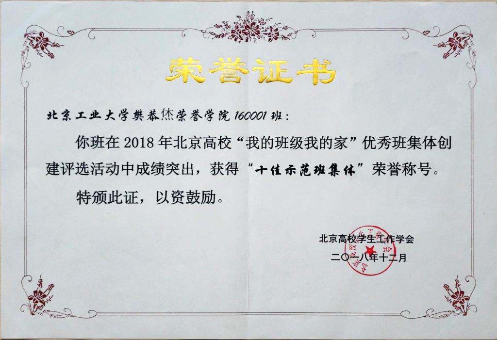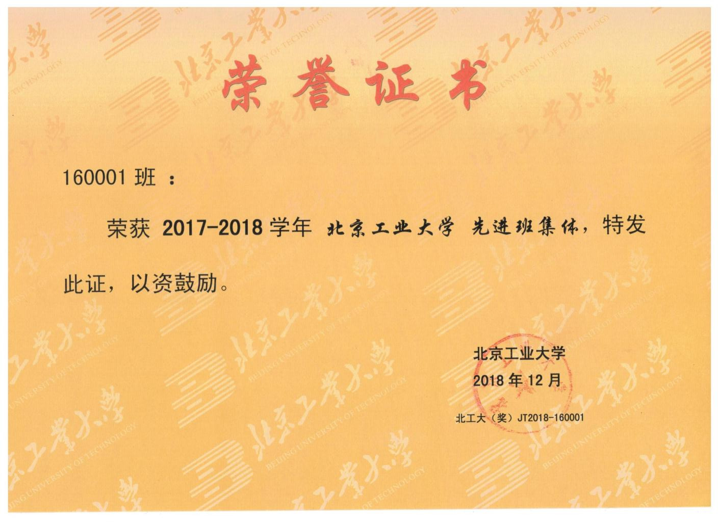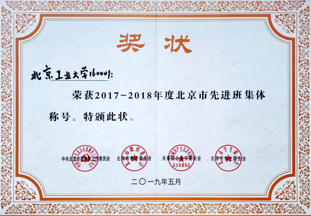160001班 荣获 北京市先进班集体
