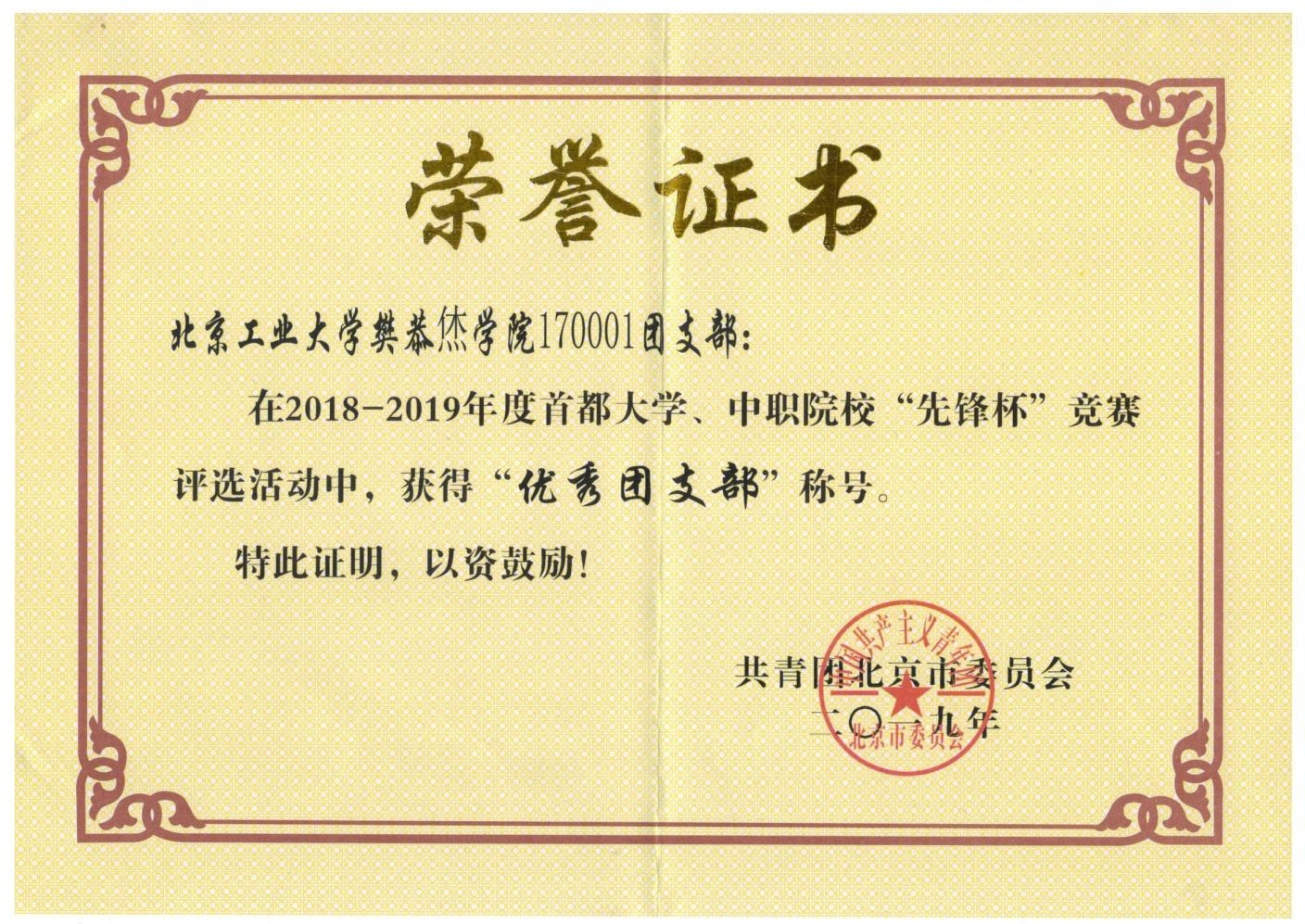 170001团支部 荣获 优秀团支部