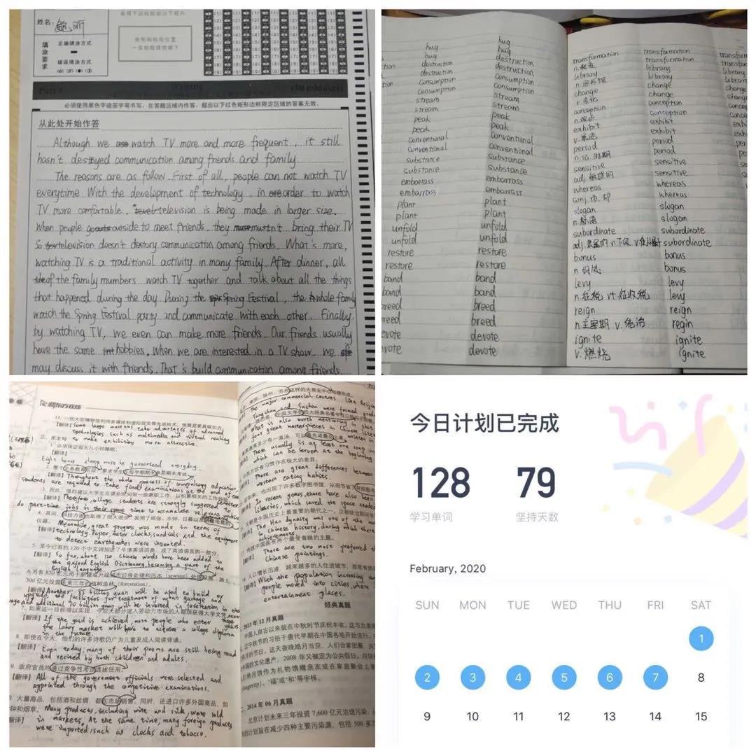“功夫不负有心人”,同学们在考试之前的两个月里积极备考,在完成课内学习任务的同时,还在课余时间进行针对性的查缺补漏。在190001班学习委员张晔鹏的细心组织和安排下,同学们还举办了各项学习活动,如号召大家参加晚自习,为学习较为吃力的同学找到学伴儿,每天单词学习群里打卡等。