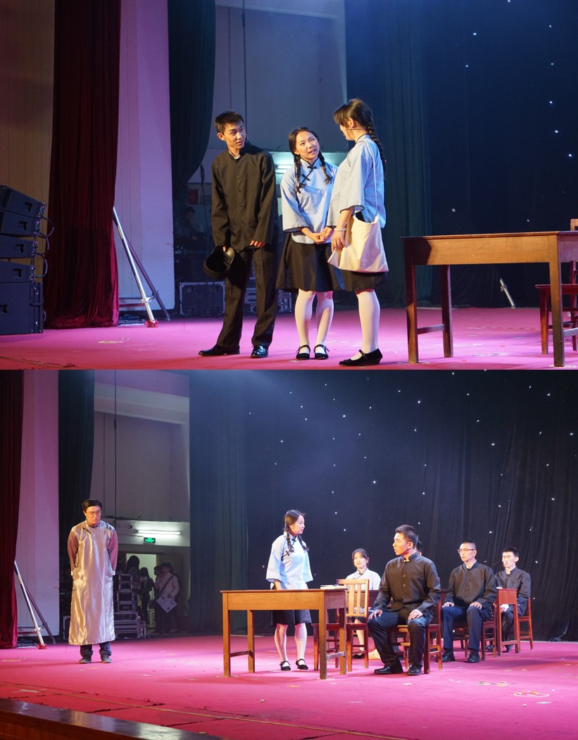 《少年中国》讲述了在国共谈判时期,具有进步思想的青年樊恭烋来到西南联大,在领导学生运动的同时,不计个人恩怨,帮助处处为难他、思想迂腐的同学,并最终感化同学,一起为国家贡献出青年力量的故事。我院同学在本次话剧中通过惟妙惟肖的演出,再现了樊恭烋校长在青年时期的不计得失的奉献思想和胸怀国家的爱国精神,形象生动地塑造了老校长勇于担当的青年形象。在国家风雨飘摇之际,中国青年敢于献身,为维护国家的和平稳定而贡献力量,更是体现出中国青年所应具有的崇高的民族精神和爱国主义情怀。