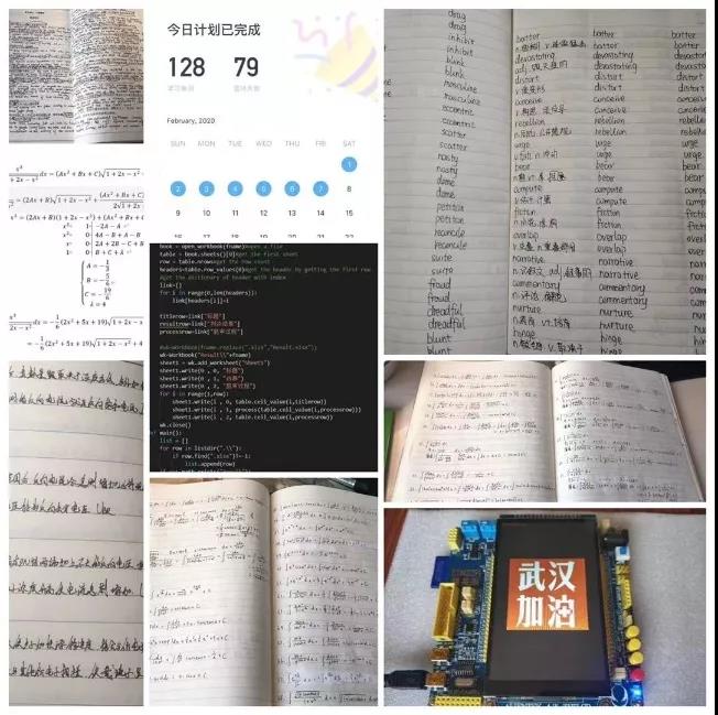 在这场没有硝烟的战役中,千千万万个医护人员奔赴战役前线,科学家们日日以夜继攻克新型冠状病毒感染的难关,他们远离温暖的家,远离挚爱的亲人,为国家奉献自己的力量。当年青年团员是建设国家的主力军,只有不断努力进取,夯实科学学习基础,提升自己的能力,危机时刻方可从容不迫为国家、为社会奉献自己的力量。樊院学子们倍加珍惜在家中的时光,合理利用时间,妥善分配时间学习与生活。在关注疫情状况的同时,踏实笃学,步履不辍。