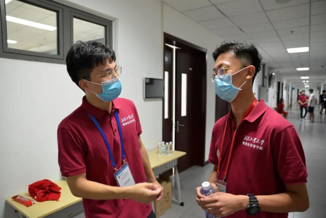 有的志愿者顶着炎炎烈日往返于校门与宿舍之间,为营员们指引路线、搬运行李、解答问题,有的志愿者在公寓门外严守防疫防控要求,为营员测量体温、核对健康信息,还有志愿者流水线工作,为营员报到登记、制作参营证、发放文件袋、手册、一卡通、口罩、饮用水、钥匙、遥控器等,保障了新营员们的顺利、高效入住,增强了营员在北工大校园的融入感。