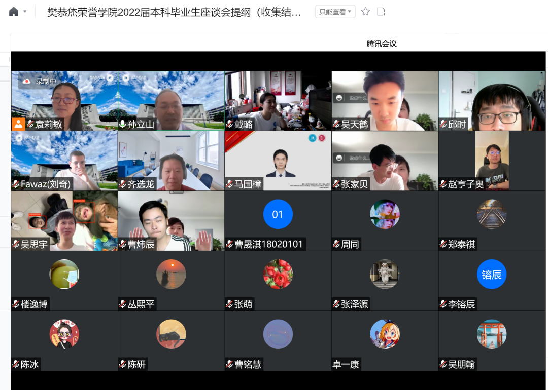 成功举办了2022届毕业生线上座谈会。孙立山院长,袁莉敏副院长,戴璐老师,张萌老师,外教Dr.Fawaz及2022届全体毕业生参与了此次座谈。