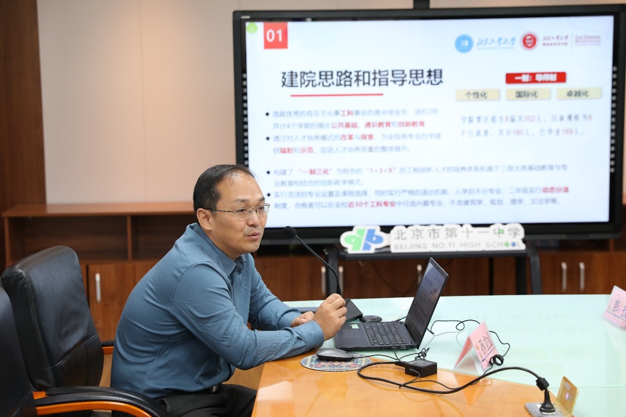 院长孙立山、副院长陈春跃、信息学部李童副教授,北京市第十一中学书记、校长崔楚民等领导、老师出席交流会。