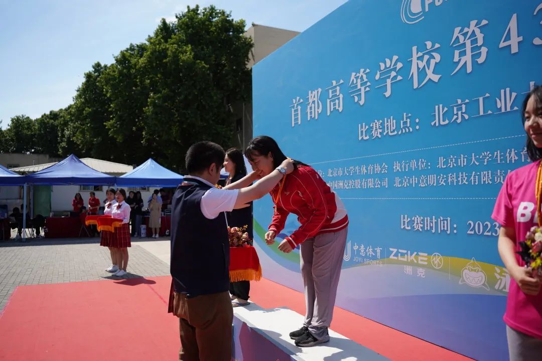 6月3日,2022级胡梦婷同学代表我校参加“首都高校游泳比赛”,在赛场上勇攀高峰,壮志冲云,取得了优异的成绩!她不仅个人成绩获得了女子乙组50米蝶泳第一名(破纪录)、 女子乙组100米蝶泳第一名(破记录),更是在4×50米男女混合泳接力中为我校夺得第一名的金牌!