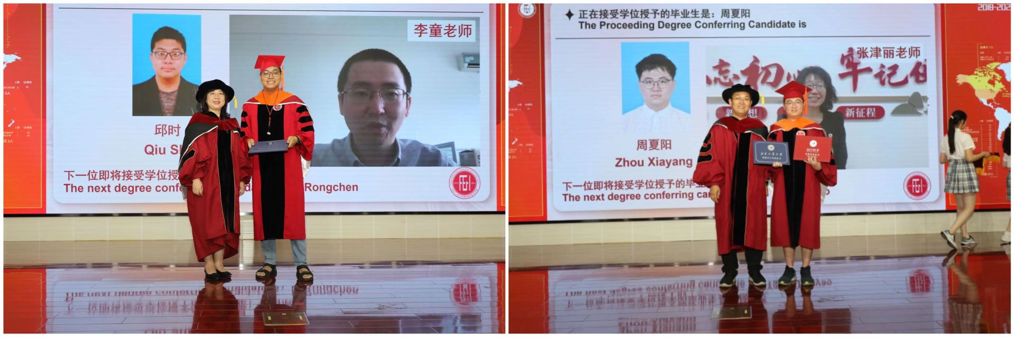 教务处处长刘赵淼教授和院长孙立山教授分别为2020届、2022届和2023届毕业生颁发了毕业证书并授予荣誉学位。在校长与各位领导为同学们拨穗时,会场播放着师生们录制的寄语和祝愿,惊喜与欢乐,追忆与不舍萦绕在心间久久不散。这是光荣的时刻,更是感动的时刻。