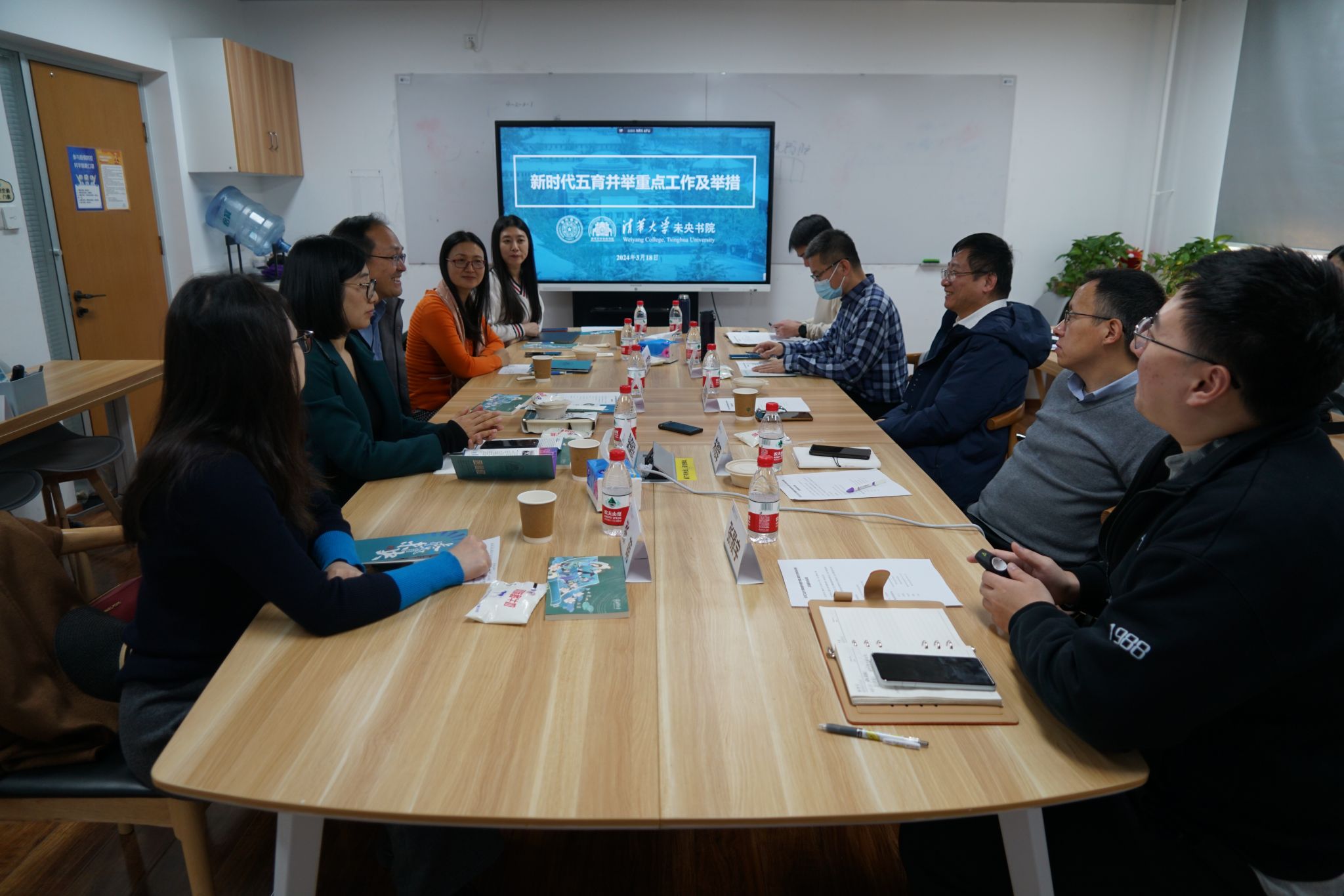 一行五人赴清华大学未央书院开展调研交流。清华大学未央书院院长梁曦东、未央书院副院长李正操、书院党委副书记、书院管理中心副主任朱德军、未央书院院长助理林今以及学生、教务等相关部门负责人参与了此次调研。