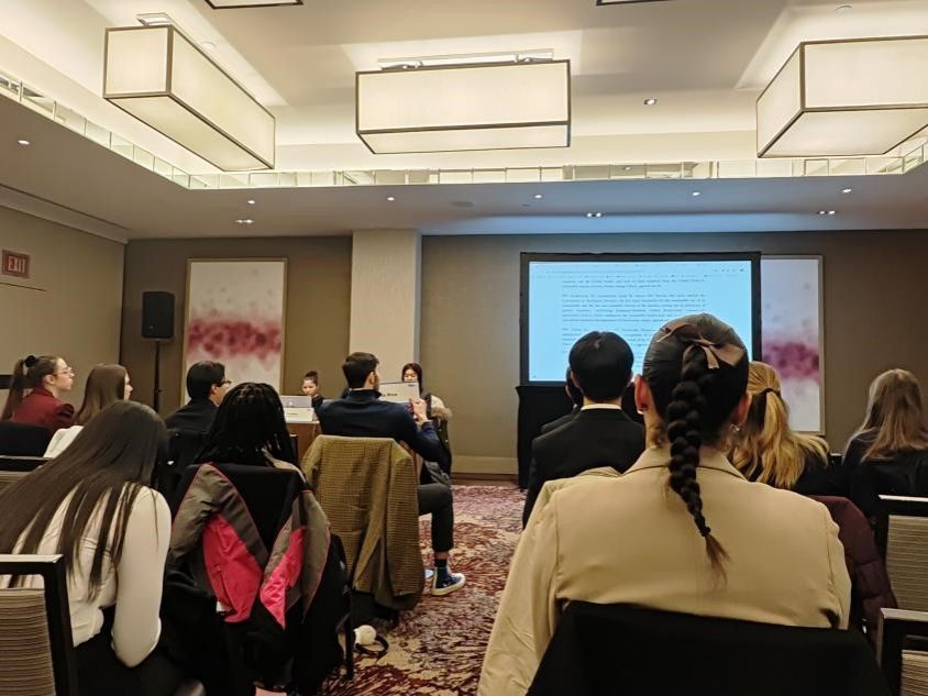 本次大会于2025年2月3日正式开幕,四位同学分别代表不同国家,围绕地球环境危机、抵制恐怖主义、海洋塑料及微塑料处理三大国际热点问题展开了深入的讨论与交流。他们迅速做好角色转换,积极履行代表职责。会议按联合国的四大地区(亚太、非洲、欧洲和美洲)进行分组,各地区代表就各自议题开展讨论,并共同撰写决议草案。
