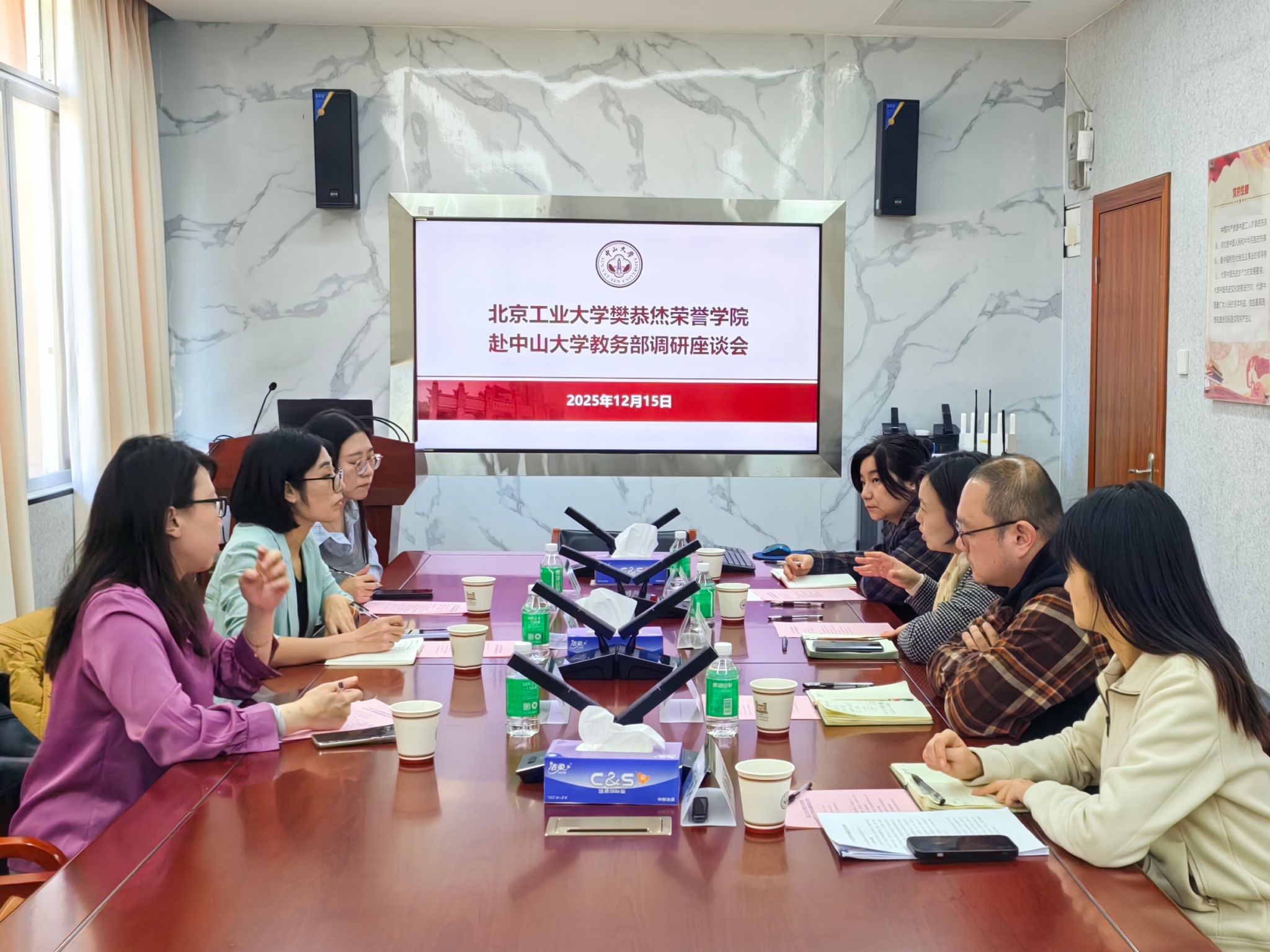 2025年12月15日,学院一行在中山大学教务部重点学习了该校通专融合课程体系、本研贯通培养模式的创新实践经验,教务部副主任周卉等参与座谈。中山大学通过打破学科壁垒,构建“基础+专业+前沿”的课程模块,实现通识教育与专业教育的深度融合。同时,该校以“科研营地”为载体,鼓励学生早期参与科研项目,形成“课堂学习-科研实践-成果转化”的闭环培养路径。其“以院系为主体”的拔尖人才自主培养机制,为学院提供了“因材施教、分类培养”的宝贵经验。
